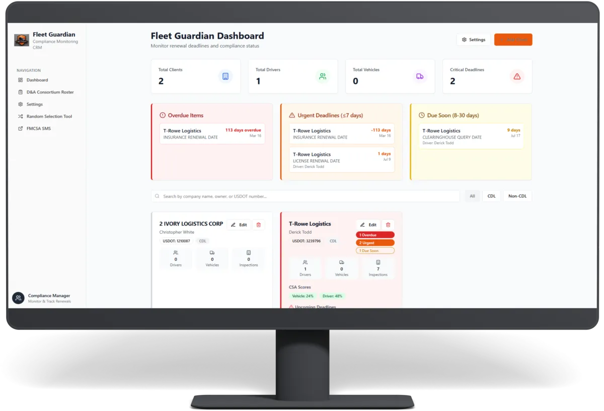 Drug test renewals, medical card expirations, and training requirements slip through the cracks without proper tracking systems.